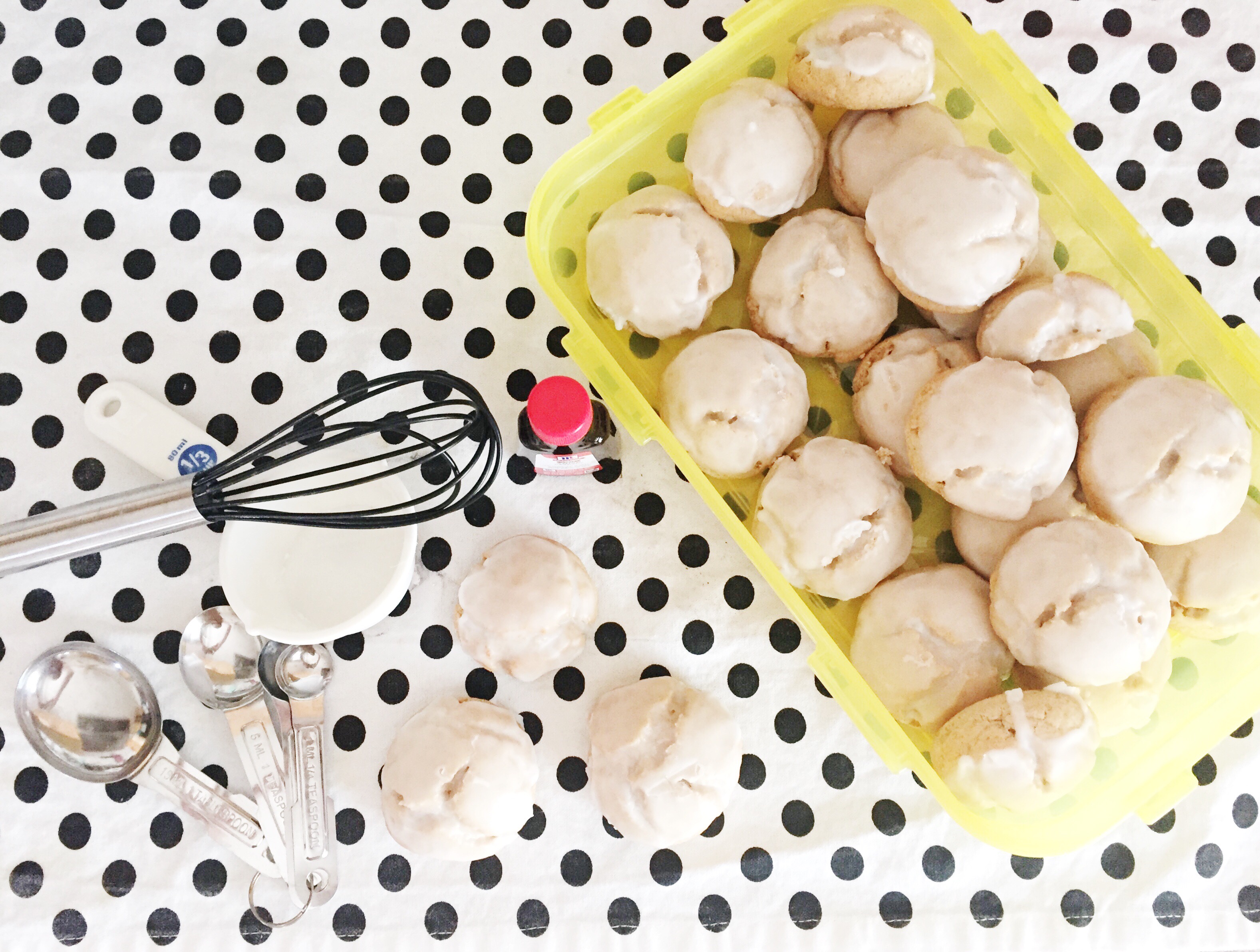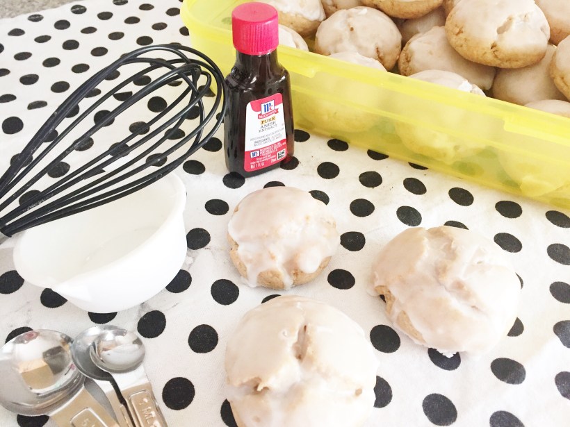 When the cookies are cool, make the glaze by drizzling boiling water over confectioner’s sugar and anise and whisking until it reaches an Elmer’s glue-esque consistency. Dip each of the cookies into the glaze until the top is well coated and add sprinkles if desired. Let the glaze harden before storing!