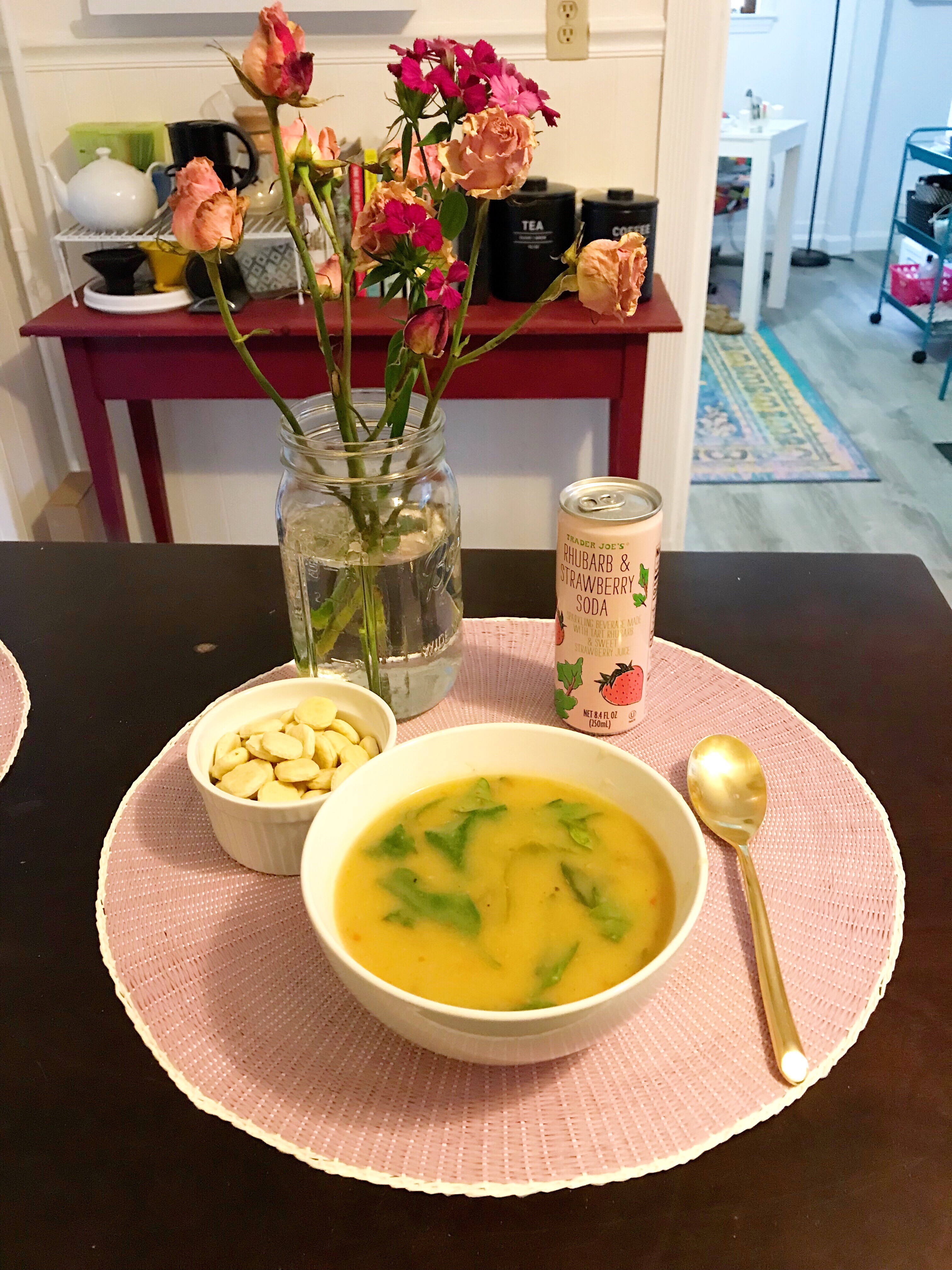 I am a soup maniac. I will eat soup anytime, anywhere. Even though it’s late spring, we had some 50 degree weather recently, so I knew I had to make a steaming pot of comfort food. Luckily for my taste buds, Trader Joe’s had the leeks displayed at my eye level the other day so potato leek soup it was! The power of suggestion is strong!
